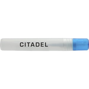 The 0.27oz Pen Sprayer Sanitizer with 62% Alcohol is a pocket-sized spray sanitizer engineered using 62% alcohol. Meets FDA requirements and is available for shipment within the United States (including Alaska, Hawaii & Puerto Rico). Not available for export. See General Information page for additional air shipment charges. Height 5" Width 0.59" Diameter 0.59" Weight 0.016 lbs. 0.00" D x 0.59" W x 5.00" H