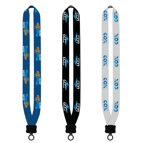 Don't let potential clients leave your company's promotional event empty handed. Choose this 1" polyester dye sublimated lanyard with a plastic clamshell and O-ring as a handy giveaway during trade shows, conferences and fundraisers. What an excellent opportunity for you to promote your business. This lanyard is a terrific choice for sports teams, universities and non-profit organizations. Additional optional imprint area is ¾"w x 30"l back solid color with no logo. Complies with CPSIA, Prop 65. 1" W x 16" L