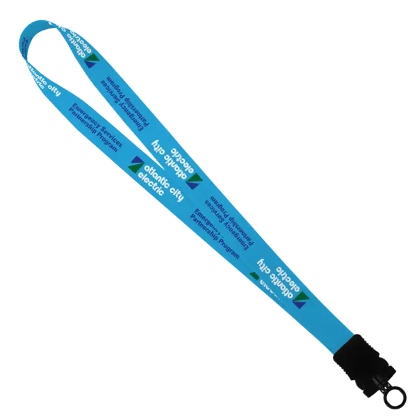 Dye Sublimated Stretchy Elastic Lanyard With Plastic Snap-Buckle Release And O-Ring. 16" per side. Complies with Prop 65. 1" W x 16" L