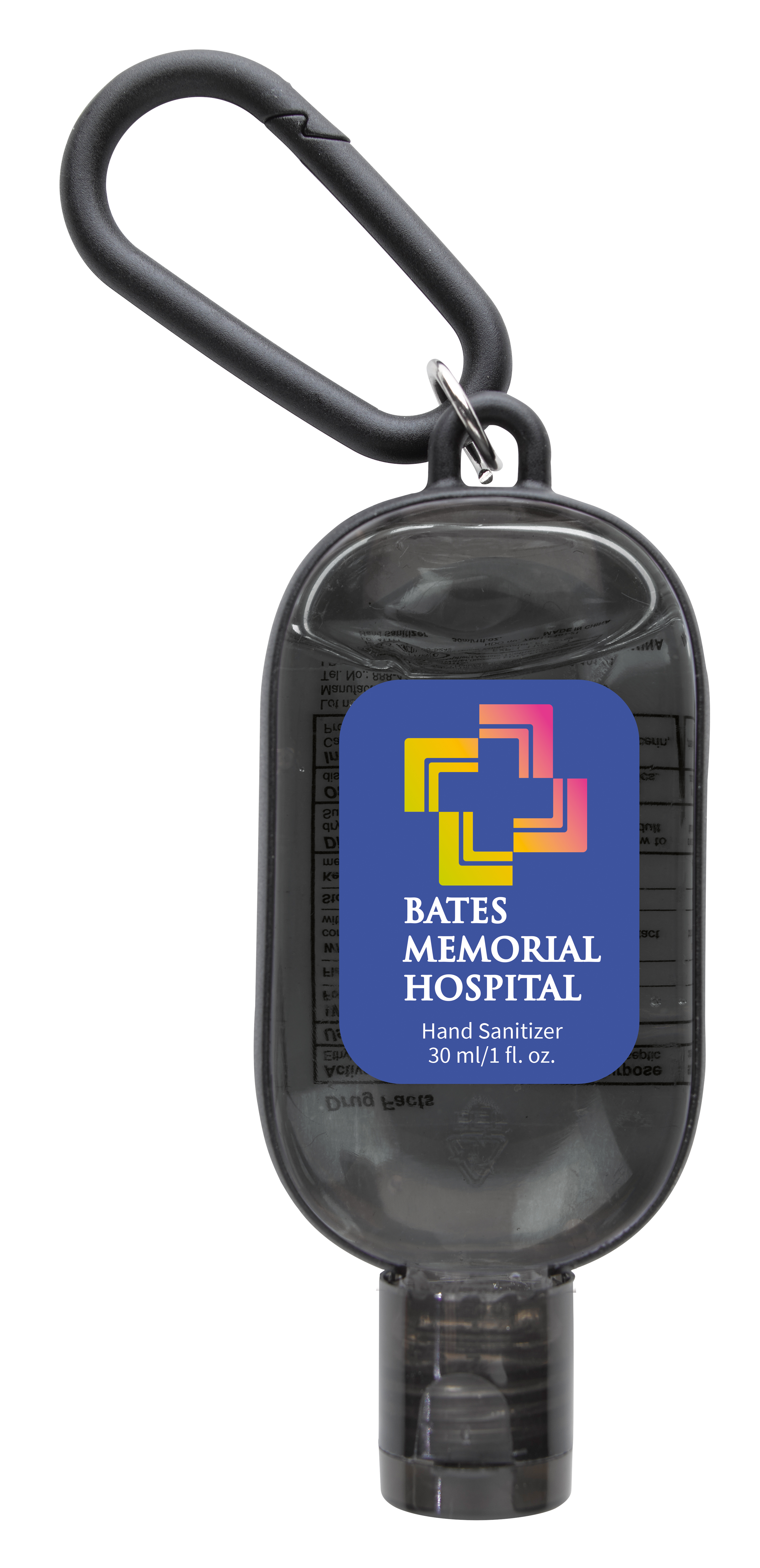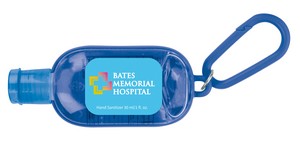 Hand sanitizers are an essential item, and this 1 oz. bottle with carabiner attached is perfect for your backpack, purse, or lunch bag. Its eye-catching colors and unique case bring a little fun to the mundane task of cleaning your hands. 1.625" W x 3.875" H x 1" D