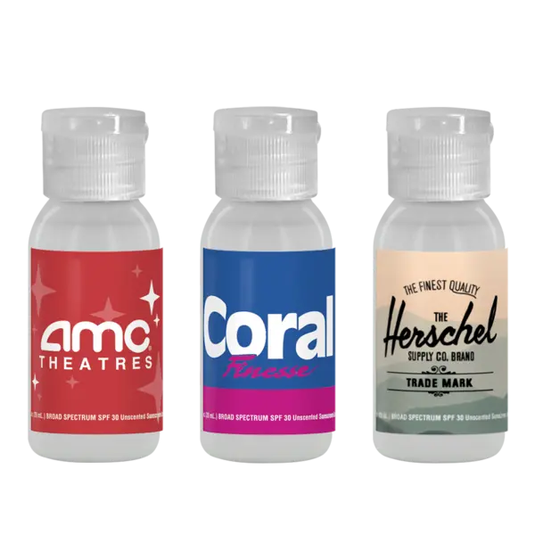 Bag some "rays" during upcoming promotional events with this fantastic marketing tool. Choose this 1 oz SPF 30 sunscreen lotion in a clear round bottle as a handy giveaway. SnugZ SPF 30 sunscreen products do not contain Oxybenzone and Octinoxate. Hawaii has banned certain ingredients such as Oxybenzone and Octinoxate. It is USA Made in an FDA Registered facility. Our sunscreen meets the updated FDA standards for broad spectrum. Complies with CPSIA, FDA, Prop 65. 3.25" H x 1.25" Diameter