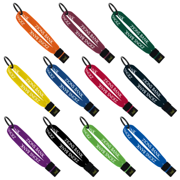 Here's an item to "latch" onto during your company's marketing campaign. Choose this 1/2" cotton wrist retainer that features a metal split-ring and length adjusting slider. Use the silkscreen imprint method to add your logo to this item for a fantastic opportunity to promote your business. Tradeshows, conferences and seminars are all terrific choices to hand out this item. People will think of your company when reaching for their keys. Complies with CPSIA, Prop 65. 0.5" W x 6" L