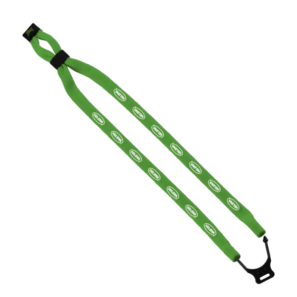 Cotton Dual-Use Trade Show Lanyard. First, use it as a trade show lanyard...Then after the show, it adjusts to become an eyewear retainer. Name badge connector piece included (ships unassembled). A great sustainable item for your Earth Friendly customers! 17" per side. Complies with CPSIA, Prop 65. 0.5" W x 17" L