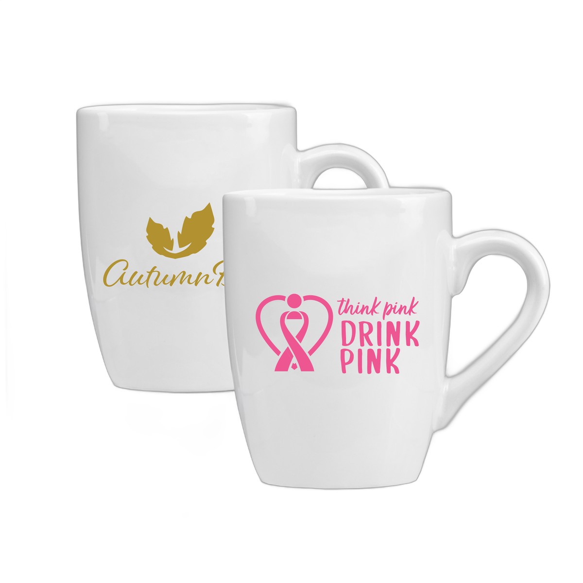 Our 13 oz. white ceramic bistro mug features a large handle and generous capacity that will help make this mug an everyday favorite for your clients. Your silkscreened logo will be there to deliver your branding message each and every day. Hand wash only. Complies with Prop 65. 4.35" H x 3.39" W