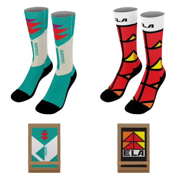 Our brand new dye-sublimated socks will keep you warm and stylish during the winter season. Definitely consider these for outdoor events, gyms, races and more! Pick from a variety of fun stock patterns or submit your own custom artwork. Stock patterns: Argyle, Crazy Squares, Shimmering Blue, Triangle Cluster, Green Zig-Zag, Golf, Blue Spots, Foot Ball, Back to School, Awareness, and Motherboard. Complies with CPSIA, Prop 65.