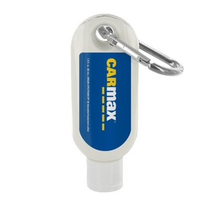 Here's a terrific marketing tool to spread on upcoming promotional events. Choose this 1.9 oz SPF 50 sunscreen lotion with carabiner clip as a handy giveaway. This product is Oxybenzone and PABA Free. It is USA Made in an FDA Approved facility. Our sunscreen meets the updated FDA standards for broad spectrum. The container size is 4 1/2 x 1 5/8. Add your company's logo and order yours today. 1.625" W x 4.5" H