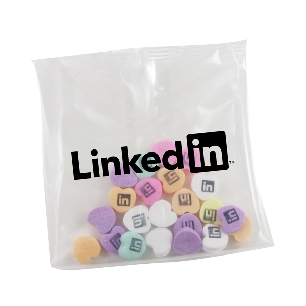 Be the life of the party and give out goody bags of imprinted conversation hearts! Pouches with 1 oz. of candy can be branded with your logo in a couple of ways. Get the labeled bag that measures 3" x 4" or choose the one with a direct imprint, measuring 4.929" x 2.5". This is a great giveaway for tradeshows or other events. Let your clients walk around with this tasty treat and get your brand seen!