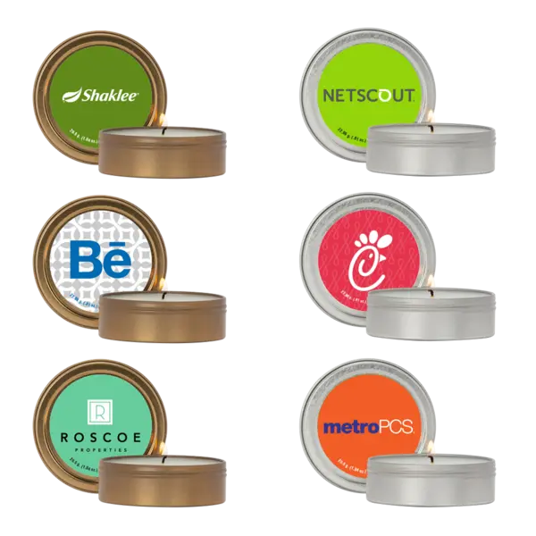 Who doesn't love "me time?" No one, that's who. That's what you'll give your audience when you dole out this 2 oz scented candle in a special screw-top metal tin—a much-needed staycation. Looks wonderful. Smells even more divine. Choose from a variety of scents and a gold or silver tin finish. Your brand will grace bathtubs, coffee tables, and office desks until this candle flickers its last flame! That's hours and hours of brand recognition. Complies with Prop 65. 0.75" H x 2.5" Diameter