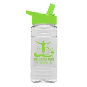20oz. Transparent Tritan Sports Bottles with Wave design & Drink thru lid. This bottle is reusable, refillable, and recyclable, great as an eco-friendly promotional product. BPA Free and FDA Compliant, safe for food contact. 2 7/8" Diameter x 7.5" H