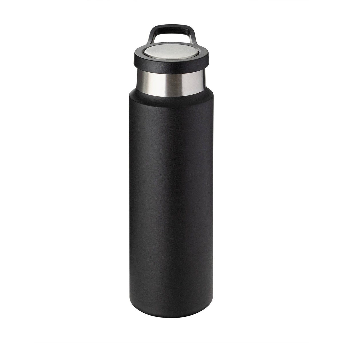 22 oz. Vacuum insulated Stainless Steel water bottle with ABS Plastic & Stainless Steel push lock lid. A hardy, reliable bottle designed for everyday use, with a fast-click lid that opens in an instant. Simply click once to release the vacuum seal and remove the pull-off lid. Insert the lid and click again to lock it securely in place. NOTE: The center of the lid pops up when released. Powder-coated body for lasting, no-sweat protection. Lid features a built-in grab handle. Fits most standard automobile cup holders, although we recommend sampling to verify it fits your car's cup holder. Hand wash only. Keeps liquids hot up to 10 hours and cold up to 26 hours. 3.7000" W x 9.6000" H x 3.0000" Diameter