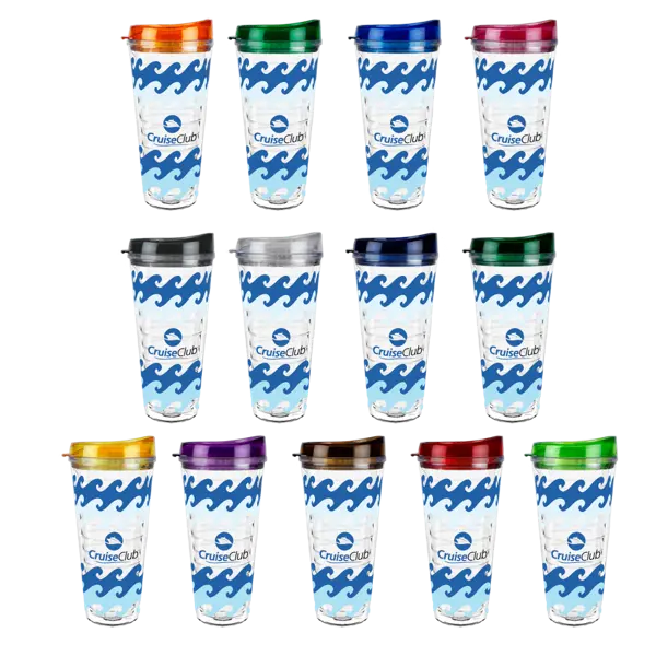 Take it out to the game! Clear 22oz. Turntab lid tumbler. Double wall; SAN material. Made in USA. 3.125" W x 7.625" H