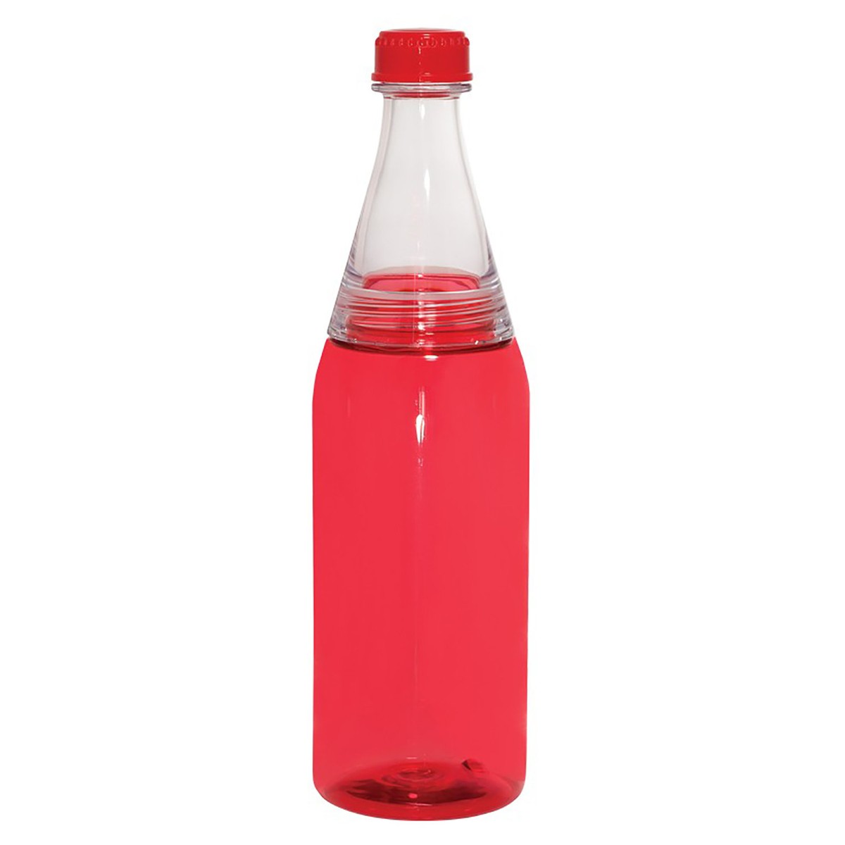 23 oz. (680 mL) AS Plastic water bottle with screw-on cap. Bottle unscrews both at neck, for easy filling of ice cubes, and at traditional cap. Features leak-resistant Silicone gasket. Cap color matches contrasting body. Hand-wash only. While Supplies Last! 10.7500" H x 2.8750" Diameter