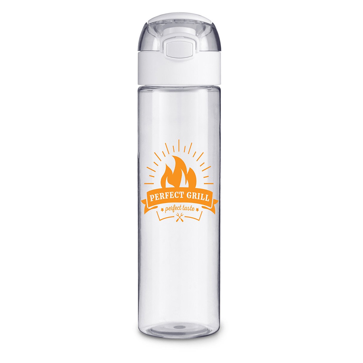 23 oz (700 mL) single wall Tritan™ Plastic water bottle. Features push-pull lid with carry loop. Designed for use with cool beverages only. Hand-wash only. Do not microwave or place in freezer. 9.0000" H x 2.5000" Diameter