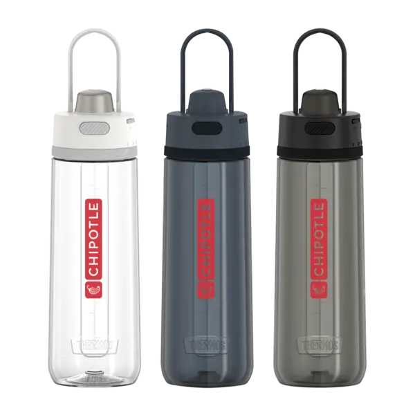 The 24oz Hydration Bottle from the GUARDIAN COLLECTION BY THERMOS keeps you in the game. Equipped with a hygienic covered spout, locking cap, carry handle, and rotating hydration meter. Made with durable and dishwasher safe Tritan™ from Eastman*, this hydration bottle is easy to clean, easy to use, and has you completely covered no matter where your day takes you. Complies with Prop 65. 3" W x 4.4" D x 9.6" H