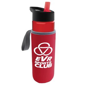 24 oz. Transparent co-polyester sports bottle with drink-thru lid and fabric/foam insulator wrap, that keeps your hands dry and your drink cold. Complies with ANSI, CPSIA, FDA, Prop 65. 9" Diameter x 3.5" H