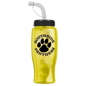 Our 27 oz. transparent sports bottles have a contoured, tapered base to fit perfectly in car cupholders. Molded from Reusable & Recyclable PETE, ships assembled. BPA Free / FDA Compliant – Safe for Food Contact. Complies with ANSI, CPSIA, FDA, Prop 65. 8" H x 3.5" Diameter