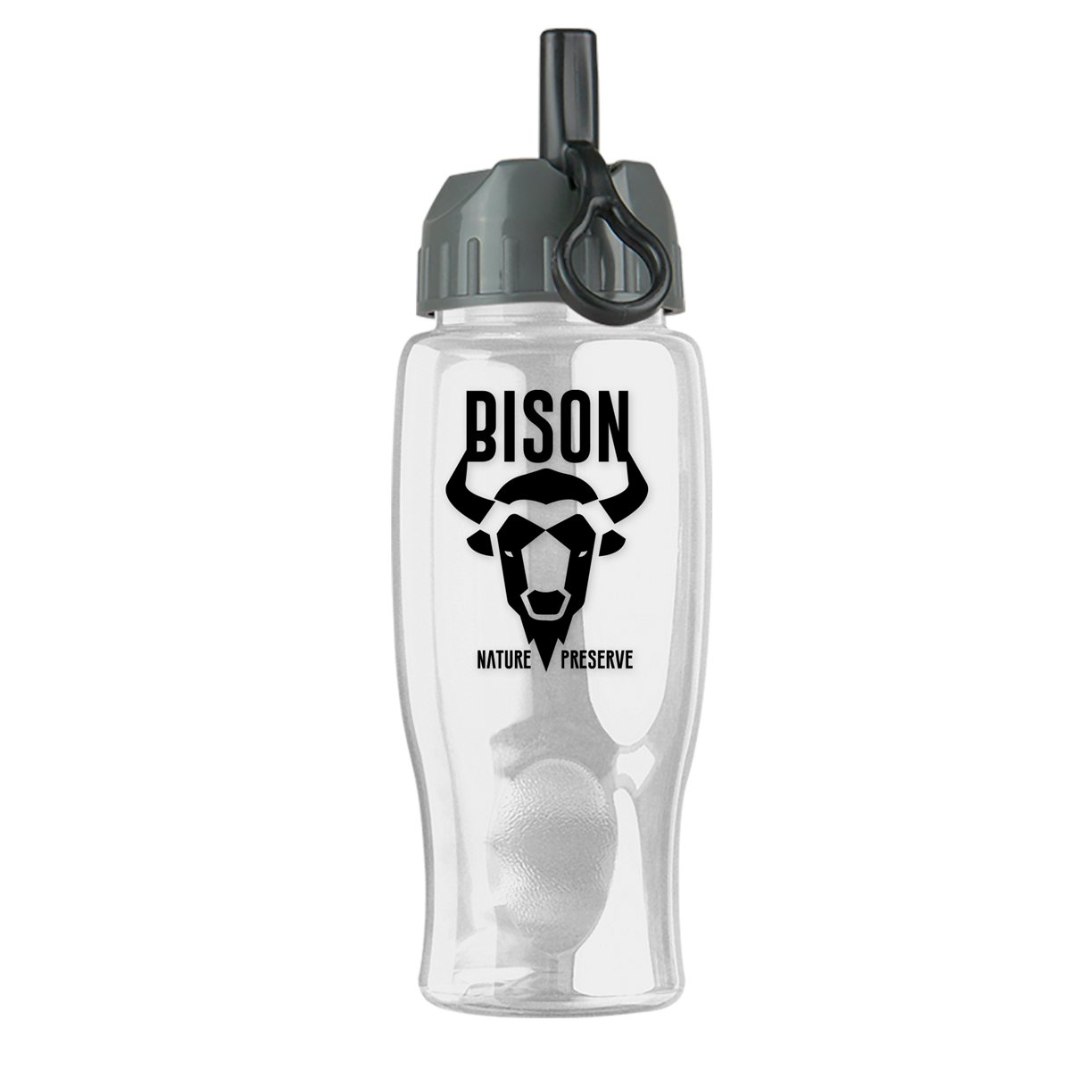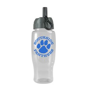 Our 27 oz. transparent sports bottles have a contoured, tapered base to fit perfectly in car cupholders. Molded from Reusable & Recyclable PETE, ships assembled. BPA Free / FDA Compliant – Safe for Food Contact. Complies with ANSI, CPSIA, FDA, Prop 65. 9.75" H x 3.5" Diameter