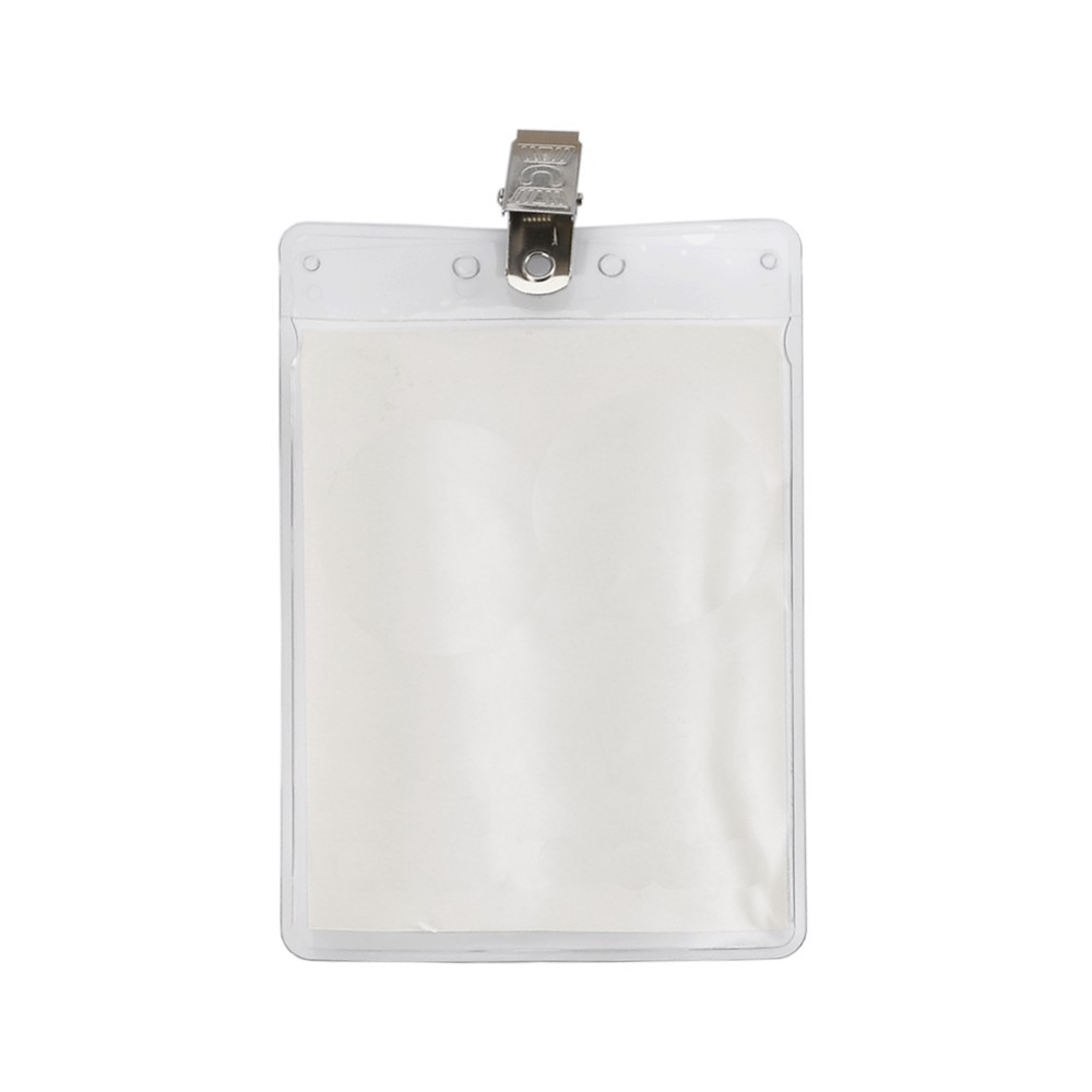 Vertical Vinyl Pouch with Bulldog Clip. Holds a 3"x4" insert card, not included. Production time for blank: 5 Business Days. Production time for one color imprint on pouch: 5 Business Days. Complies with Prop 65. 3.375" W x 4.875" H