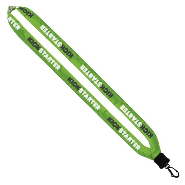 People are sure to "hang" around during your company's upcoming promotional event when you feature this great marketing tool. Choose this ¾" polyester dye-sublimated lanyard with plastic clamshell and swivel snap hook as a handy giveaway during trade shows, conferences and fundraisers. Add your logo to this product for an excellent opportunity to promote your business. Additionally, this item makes a terrific addition to company gift bags. Complies with CPSIA, Prop 65. 0.75" W x 16" L