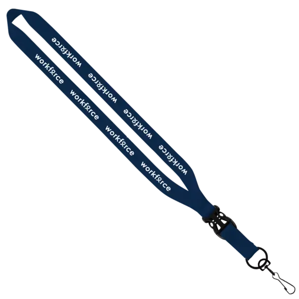 People will "buckle down" and go with your company when you feature this fantastic marketing tool. Choose this ¾" economy polyester lanyard with slide buckle release and split-ring as a terrific giveaway. Add your logo to this product using the silkscreen imprint method for an excellent opportunity to promote your business. This item makes a wonderful addition to trade shows, conferences and fundraisers. Make sure to order yours today. Complies with CPSIA, Prop 65. 0.75" W x 16" L