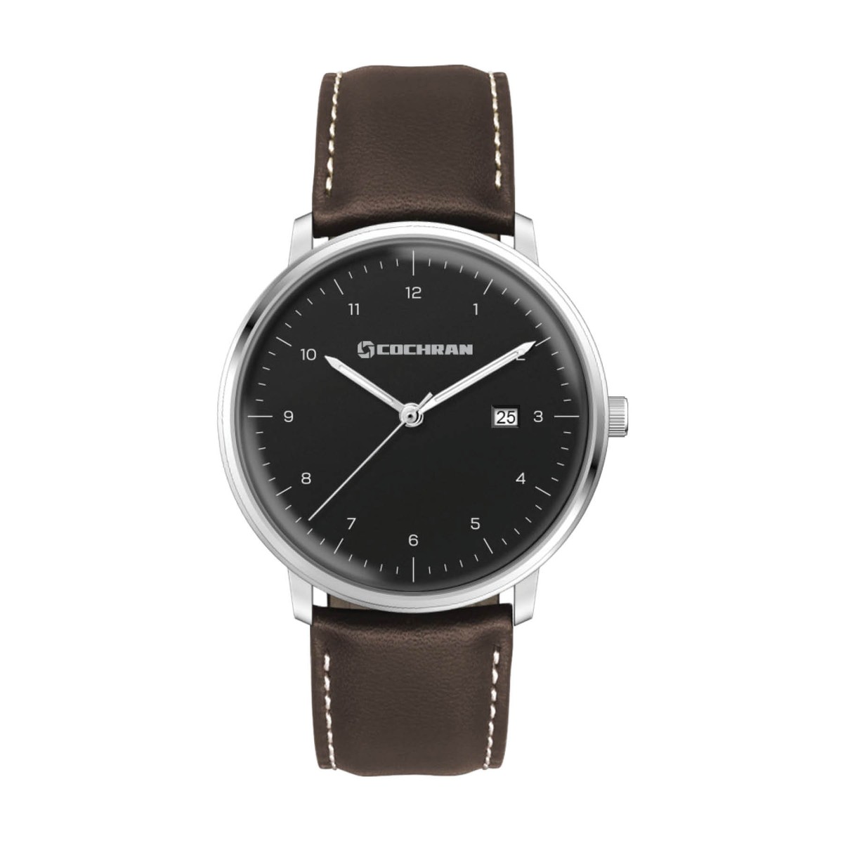 39mm stainless steel polished silver case, japan 3-hand mvt, date display, dome mineral crystal, brown oiled leather strap, water resistant to 5 atm. Complies with Prop 65. 1" W x 1" H x 1" D