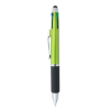 Go with multi-functional writing power combined with high tech functionality with this 4-in-1 pen with stylus. This high-profile tech tool features four ink colors and a rubber grip for increased writing comfort and control. Choose your accent color and add a custom imprint of your advertising message to complete the promotional look. From tech promotions to tradeshow appearances, this pen is a great way to put your brand directly in their hands.