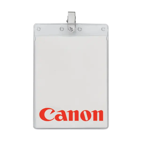 6" x 4" Printed Large Vertical Vinyl Pouch with Bulldog Clip (holds a 6" x 4" insert card). Complies with Prop 65. 4.3125" W x 7" H
