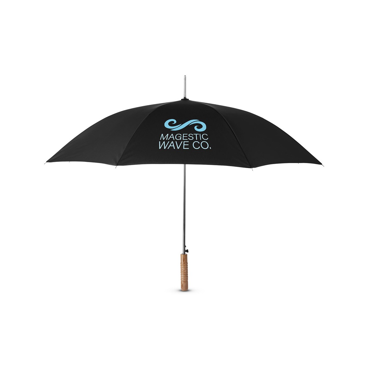Stick umbrella with 48" arc and wood handle. Auto open, manual close. 8 panel umbrella with 210T Pongee canopy and Steel shaft and ribs. Features Eucalyptus Wood handle. Hook and loop flap fastener. *24-hour rush service only applies to catalog quantities up to 288 units. 32.5000" L x 1.0000" Diameter