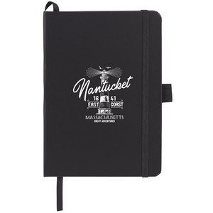 The 5" x 7" FSC® Mix Prism Notebook features a FSC®-certified paper scratch-resistant cover and 80 sheets of FSC® Mix recycled white lined paper. Includes color-matched ribbon, elastic closure and elastic pen loop. Through a partnership with 1% For The Planet, one percent of sales of all EcoSmart® products are donated to environmental nonprofits. 0.47" D x 5.00" W x 7.00" H