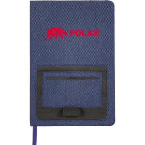 The 5.5" x 8.5" Vila Recycled PET Bound Notebook features a hard, 100% RPET cover with built in front pocket organization to hold a smartphone or business cards. Includes 80 sheets of cream FSC® Mix lined paper, black ribbon page marker and black elastic pen loop. Through a partnership with 1% For The Planet, one percent of sales of all EcoSmart® products are donated to environmental nonprofits. 0.25" D x 5.50" W x 8.50" H