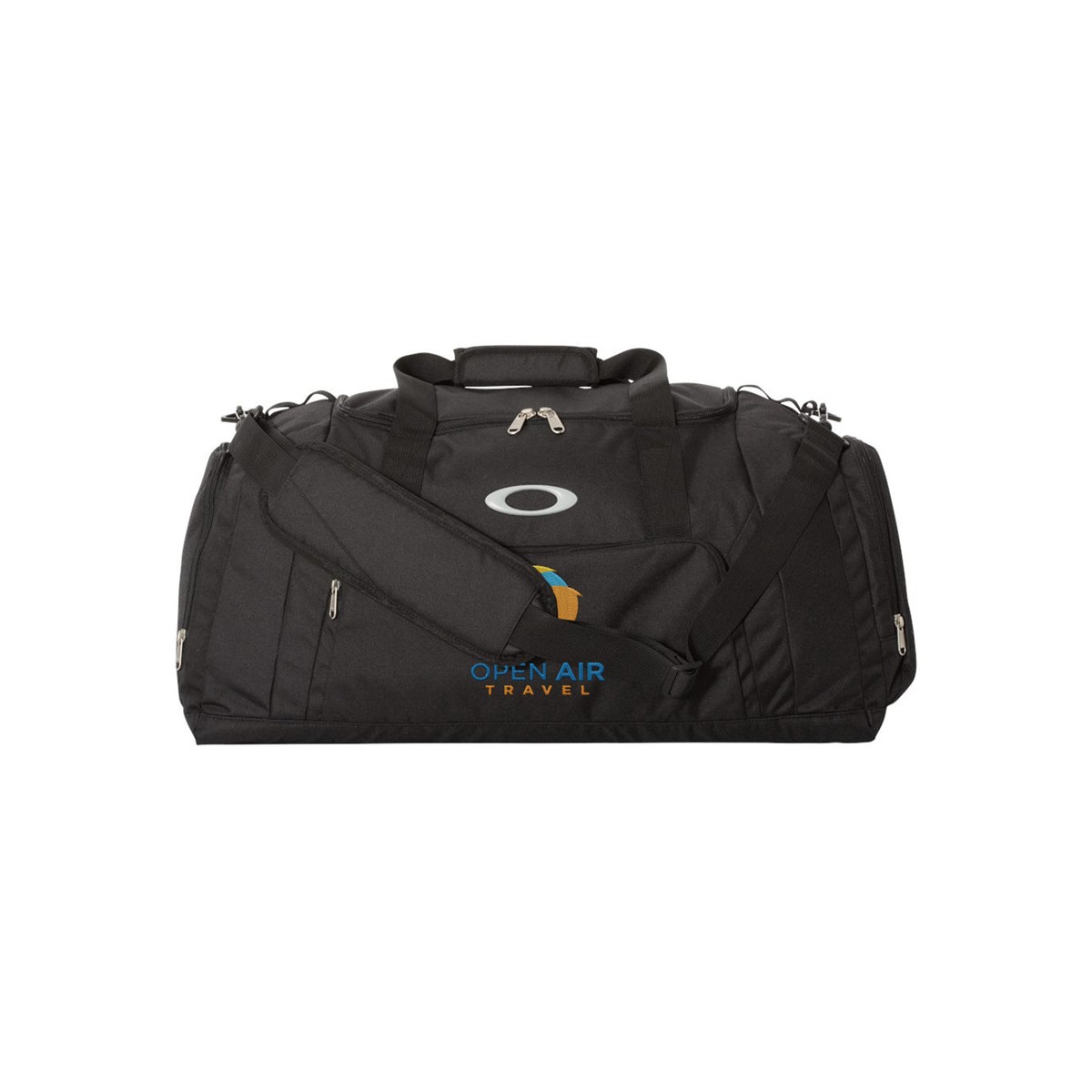 Duffel bag made of 600-denier Polyester with ripstop lining. Abrasion-resistant construction provides lasting durability. Front organizer pocket, side pocket with fleece-lined interior pocket. Large side pocket stores shoes or dirty gym clothes. Dual handles and removable, adjustable air mesh shoulder strap provide multiple carrying options. Not available blank. 23.0000" W x 12.0000" H x 10.5000" D