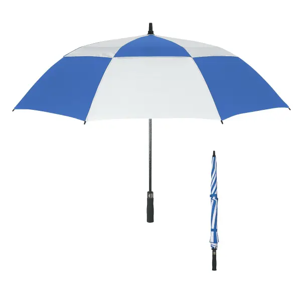 Stay dry on and off the golf course! This 58" arc umbrella has a classic umbrella design with vented windproof canopy construction. Featuring an automatic open function, this handy umbrella has a fiberglass shaft and ribs with an EVA handle. It measures 39" when closed. Available in several different color options, customize this item with an imprint of your company logo and hand it out during your upcoming event.