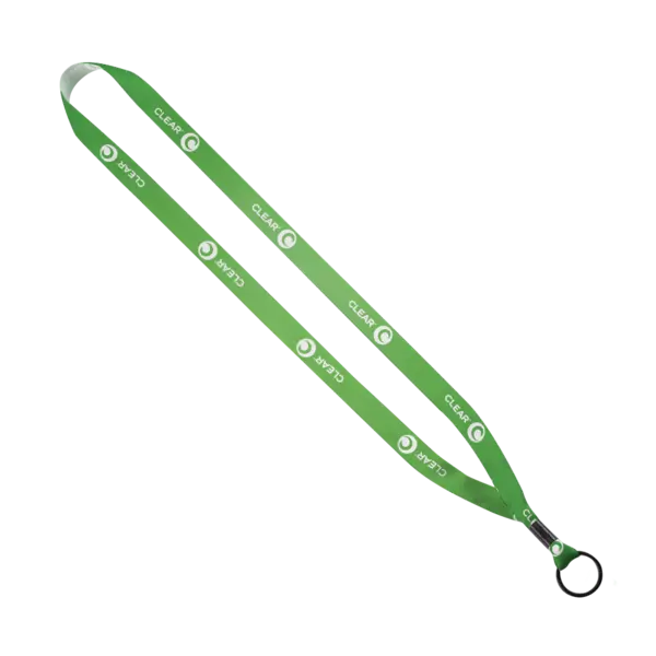 Satin Ribbon Lanyard with Metal Crimp & Metal Split Ring. Front side only. 16" per side. Complies with CPSIA, Prop 65. 0.625" W x 16" L