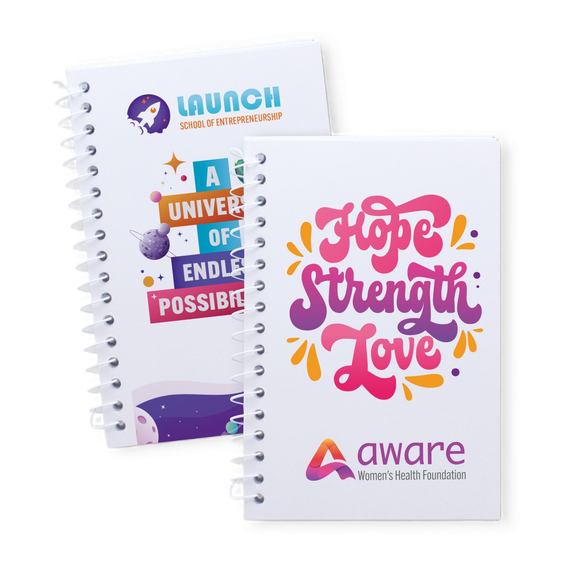 Meet their note-taking needs by presenting them with this 5x7 Spiral Notebook! This classic spiral bound notebook features 80 lined sheets of paper and a stylish front cover with a SimpliColor (TM) imprint of your logo or marketing message. Customized to match your brand's style, this office essential makes a stand out giveaway at training seminars, company meetings and much more. Pass on helpful notes with this practical book!