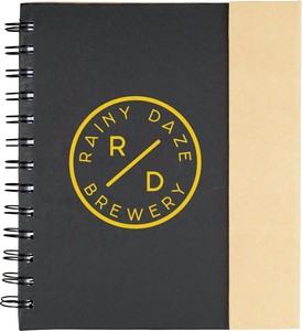 The Bullet 6.5'' x 7'' FSC® Mix Lock-it Spiral Notebook features 70 ruled pages of FSC® Mix paper and a magnetic closure. It also includes 25 sheets of 4'' x 3'' sticky memo pads and 25 sheets of 3'' x 2'' sticky memo pads in 5 assorted colors. The Lock-it Spiral Notebook also comes with a recycled cardboard ballpoint pen. Note that a pen imprint is not available and pens are packed separately. 0.60" D x 6.50" W x 7.00" H