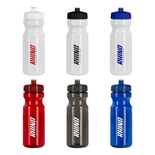 Quench your thirst everywhere from the gym to the peaks with the brand new Accona sports bottle. The perfect 24 oz. size is a match for most bike mounts, day packs and more making it ideal to drink and stow while enjoying any fitness activity. A handy push/pull lid helps to keep your hydration where it belongs and not all over the place. Choose from several color combinations and pad print this bad boy to match your brand. Proudly made in the USA with PET plastic. Complies with Prop 65. 2.9375" W x 8.0625" H