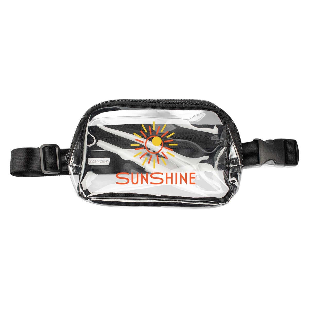 The Aero TPU Zippered Waist Bag - 1.2L is your go-to accessory for events, sports, or everyday use. Made from durable, non-toxic 30C TPU, its clear design meets NFL stadium requirements, offering both style and function. It features a zippered main compartment for easy access, along with a hidden zippered pocket to keep smaller items secure. The adjustable waist strap ensures a comfortable fit for all-day wear. Sleek, compact, and stadium-approved, the Aero is ready for wherever the day takes you. 5.50" H x 8.00" W x 2.00" D
