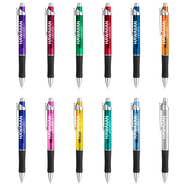 This Albany Gel Pen is that classic promotional gem you never want to do without! It features a translucent color barrel with shiny silver accents, a long black rubber grip, and smooth flow gel ink. Your logo is silkscreened on the unique colorful barrel of this key item for maximum brand exposure. Ideal for corporate offices, hospitals, nonprofits and more. It's the always-dependable giveaway for any business or project!