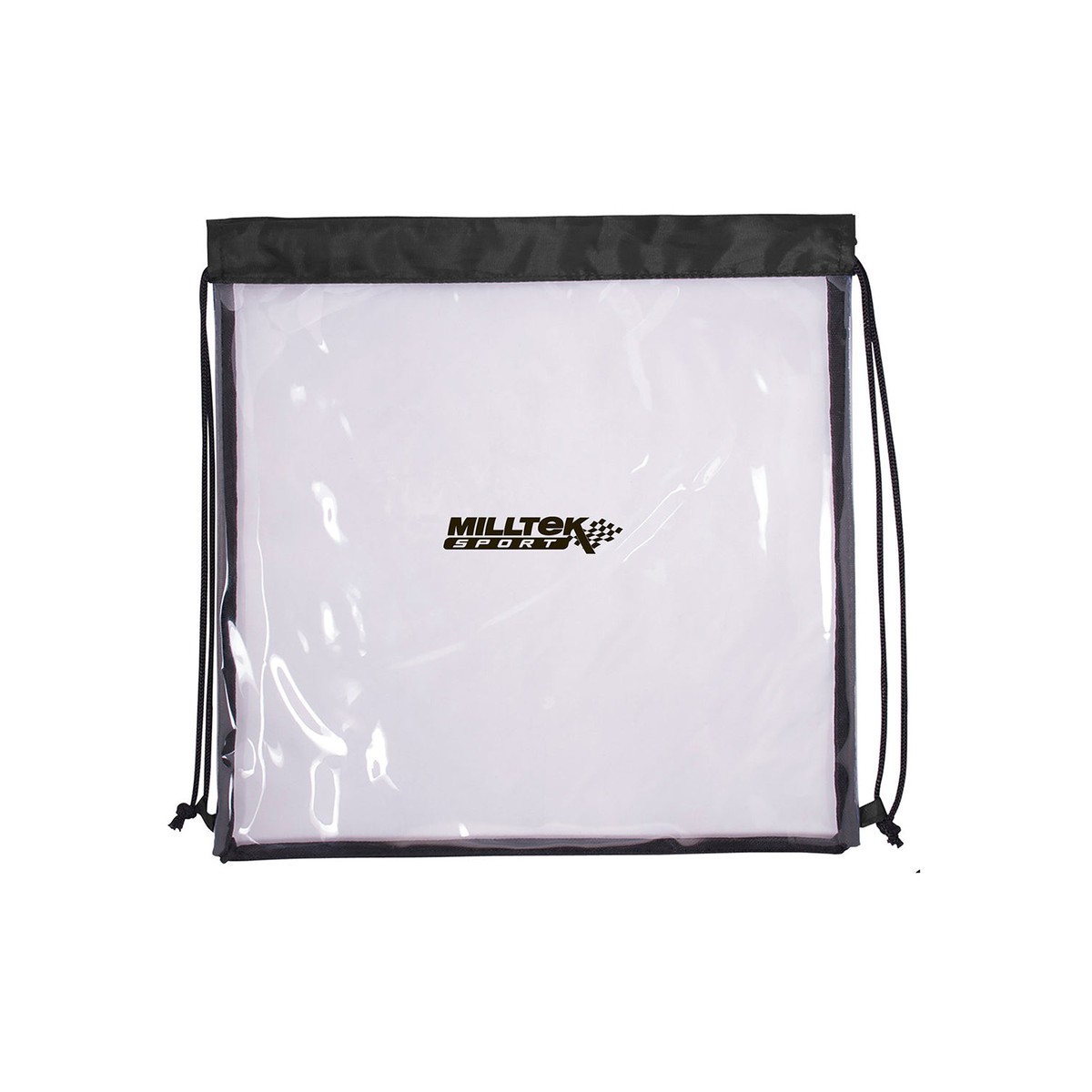 Clear 0.3 mm PVC drawstring backpack with black non-woven trim. Shoulder strap doubles as drawstring cinch-up closure. Designed to meet new NFL stadium restrictions. Also great for work place and school security. Recommended weight tolerance: 22 lbs. *24-hour rush service only applies to catalog quantities up to 800 units. 12.0000" W x 12.0000" H