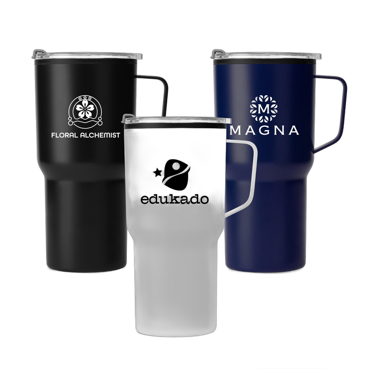 Introducing our Anchorage - 30 oz. Stainless Steel Tumbler with Plastic Liner – the epitome of style and practicality. This trendy tumbler, equipped with a clear lid and ergonomic handle, features a double-wall construction for optimal insulation of hot and cold drinks. With a sleek matte finish, a generous 30 oz. capacity, and a narrow base fitting any car cup holder, it's the perfect companion for daily use. Crafted with care, the outer body is constructed from 201 stainless steel, while the inner body and lid are made from PP and AS material, respectively. Your logo will be imprinted in Silkscreen. Complies with Prop 65. 8.46" H x 3.14" W