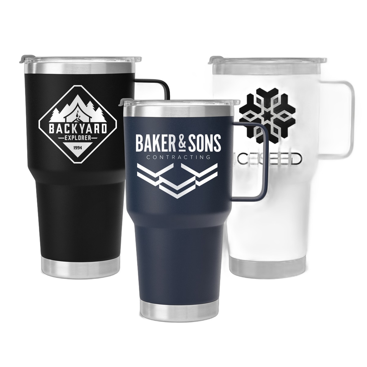 Introducing our Anchorage Pro - 30 oz. Double-Wall Recycled Stainless Steel Tumbler - a mindful option the outer and inner are made of recycled 304 stainless steel and the lid is made of recycled AS (Acrylonitrile Styrene). With a Double walled vacuum insulation it keeps drinks hot for 8 hours and cold for 24 hours. The tumbler boasts a 30 oz. Capacity and features an ergonomic handle, chrome accents and a matte finish powder coating. Measuring 7.68" × 2.87", it fits car cup holders. Your logo will be imprinted in Laser Engraving. Complies with Prop 65. 7.68" H x 2.87" W