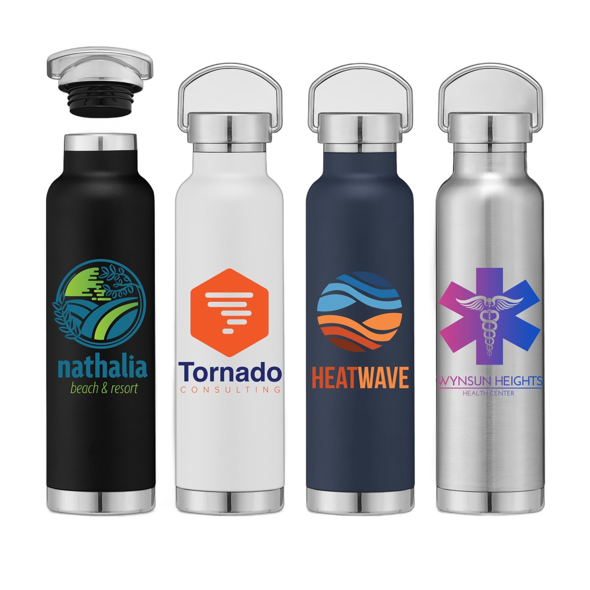Our Apollo 23 oz Double Wall Stainless Steel Water Bottle is a high-value promo piece with plenty of room to share company messages and logos. This promotional drinkware is leak-resistant and sure to make your clients happy. The Apollo double-wall water bottle can keep drinks cold for up to 18 hours and hot for up to 12 hours. . Complies with Prop 65. 9.92" H x 2.87" W