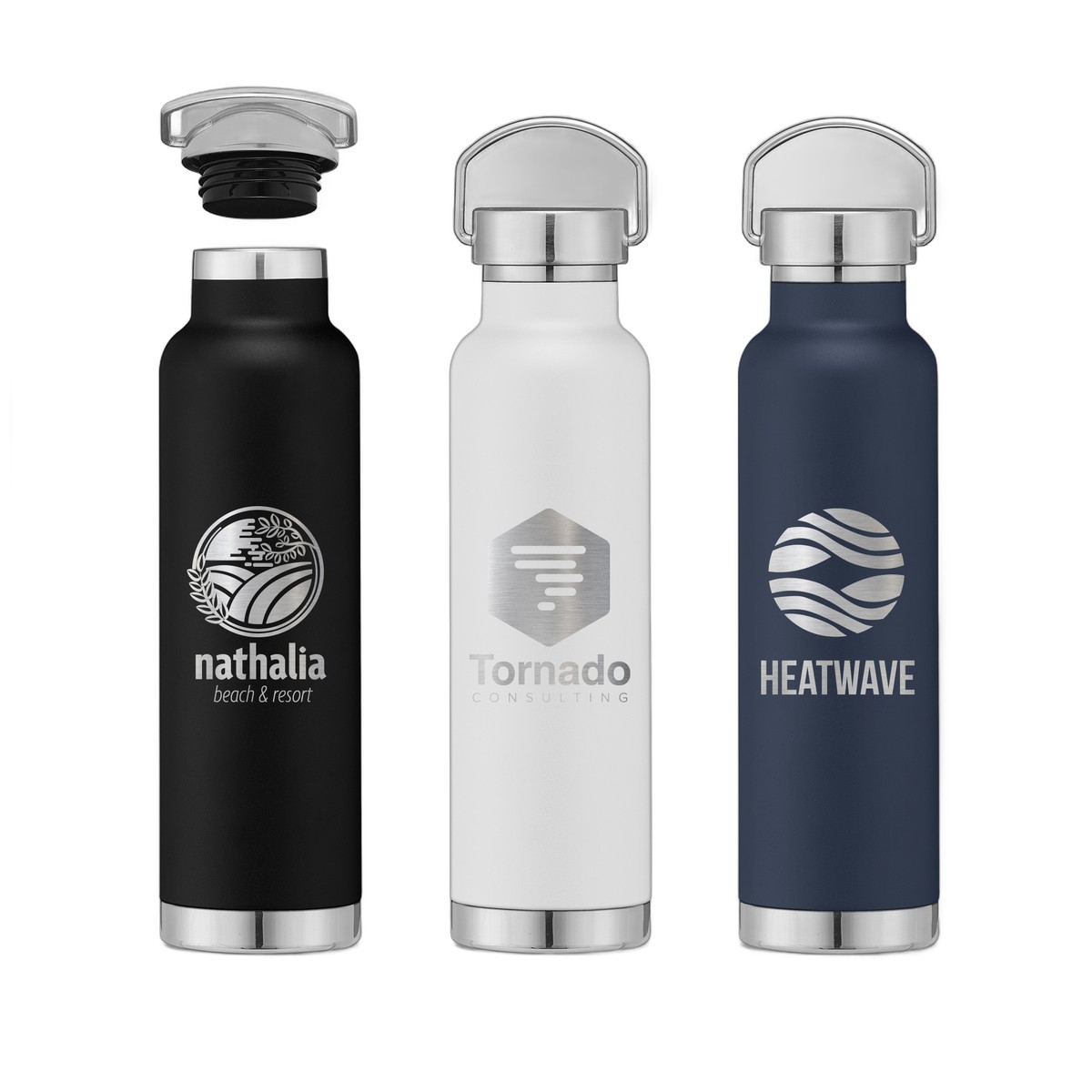 Our Apollo 23 oz Double Wall Stainless Steel Water Bottle is a high-value promo piece with plenty of room to share company messages and logos. This promotional drinkware is leak-resistant and sure to make your clients happy. The Apollo double-wall water bottle can keep drinks cold for up to 18 hours and hot for up to 12 hours. . Complies with Prop 65. 9.92" H x 2.87" W