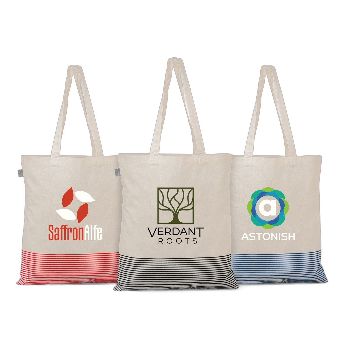 The Aro is a versatile companion for everyday use. This classic shopping tote's body is made of durable 5 oz 70% recycled content cotton and 30% recycled content PET. It proudly features a Digital Product Passport and sewn-in QR code tag that celebrates its material story. The bag is subtly enhanced with a printed micro stripe design near the bottom, adding a stylish detail to its natural canvas. With a spacious 9.7-liter capacity (max weight 10kg) and two handles, the Aro is perfect for groceries, errands, or books, providing a functional and conscious alternative to disposable bags. 16.54" H x 14.96" W
