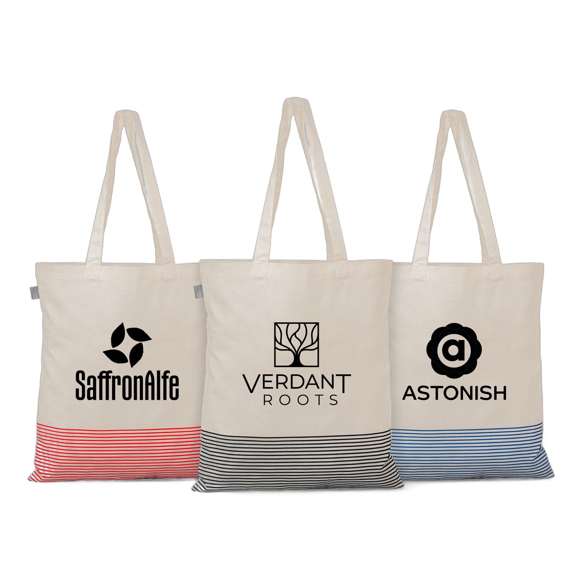 The Aro is a versatile companion for everyday use. This classic shopping tote's body is made of durable 5 oz 70% recycled content cotton and 30% recycled content PET. It proudly features a Digital Product Passport and sewn-in QR code tag that celebrates its material story. The bag is subtly enhanced with a printed micro stripe design near the bottom, adding a stylish detail to its natural canvas. With a spacious 9.7-liter capacity (max weight 10kg) and two handles, the Aro is perfect for groceries, errands, or books, providing a functional and conscious alternative to disposable bags. 16.54" H x 14.96" W