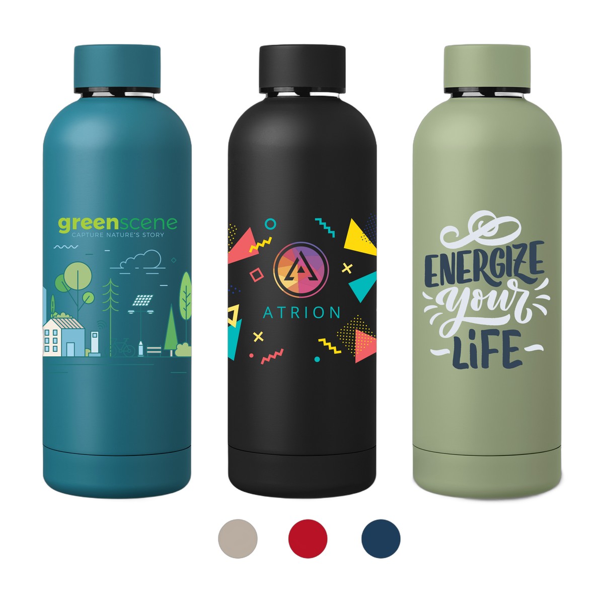 Imprint Area: 9.25" W x 3.0" H on full wrap on the bottle