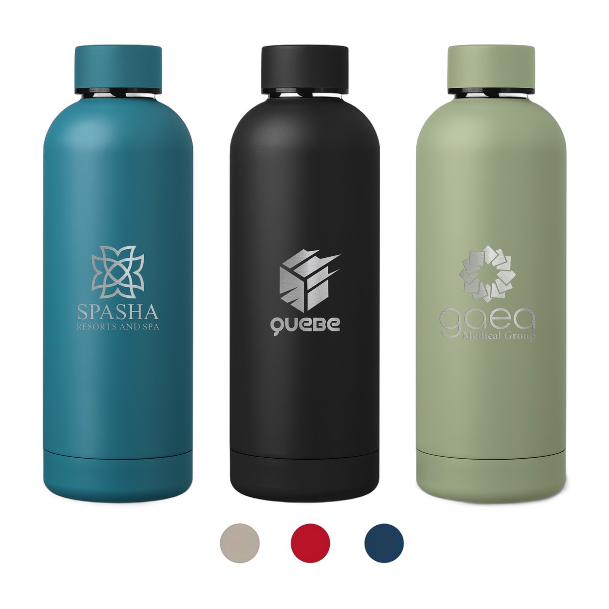 Astrid - 18 oz. Recycled Stainless Steel Double Wall Bottle features double-wall vacuum insulation, providing excellent temperature retention for hot and cold beverages. Made from recycled stainless steel (SS 304). With a capacity of 18oz , the bottle keeps cold drinks up to 24 hours and hot drinks up to 10 hours. The matching color screw-on lid ensures a leakproof seal, making it perfect for everyday use. Not suitable for dishwashers or microwaves. Complies with Prop 65. 8.70" H x 2.87" W