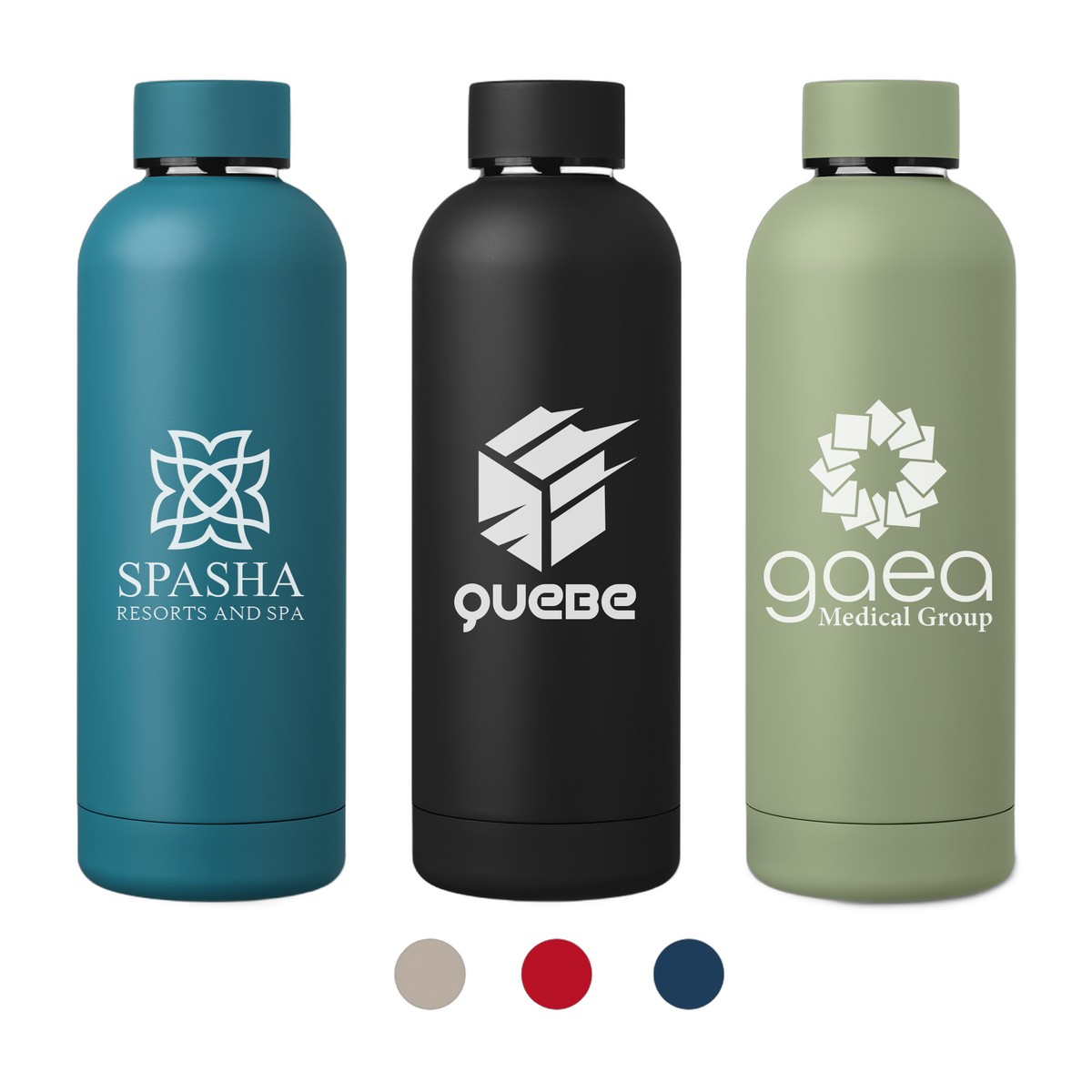 Astrid - 18 oz. Recycled Stainless Steel Double Wall Bottle features double-wall vacuum insulation, providing excellent temperature retention for hot and cold beverages. Made from recycled stainless steel (SS 304). With a capacity of 18oz , the bottle keeps cold drinks up to 24 hours and hot drinks up to 10 hours. The matching color screw-on lid ensures a leakproof seal, making it perfect for everyday use. Not suitable for dishwashers or microwaves. Complies with Prop 65. 8.70" H x 2.87" W