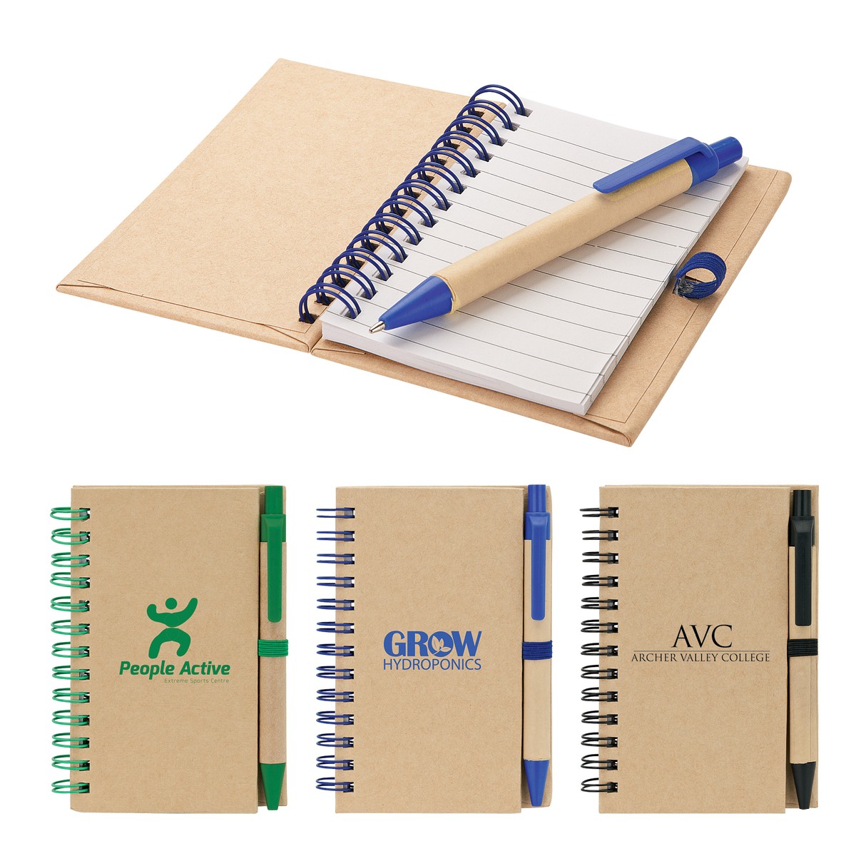 Spiral bound 40-page notebook with paper cover and ballpoint pen barrel and 2 1/2" x 4 1/2" lined paper. Complies with Prop 65. 3 3/8" W x 4 3/4" H x 9/16" D