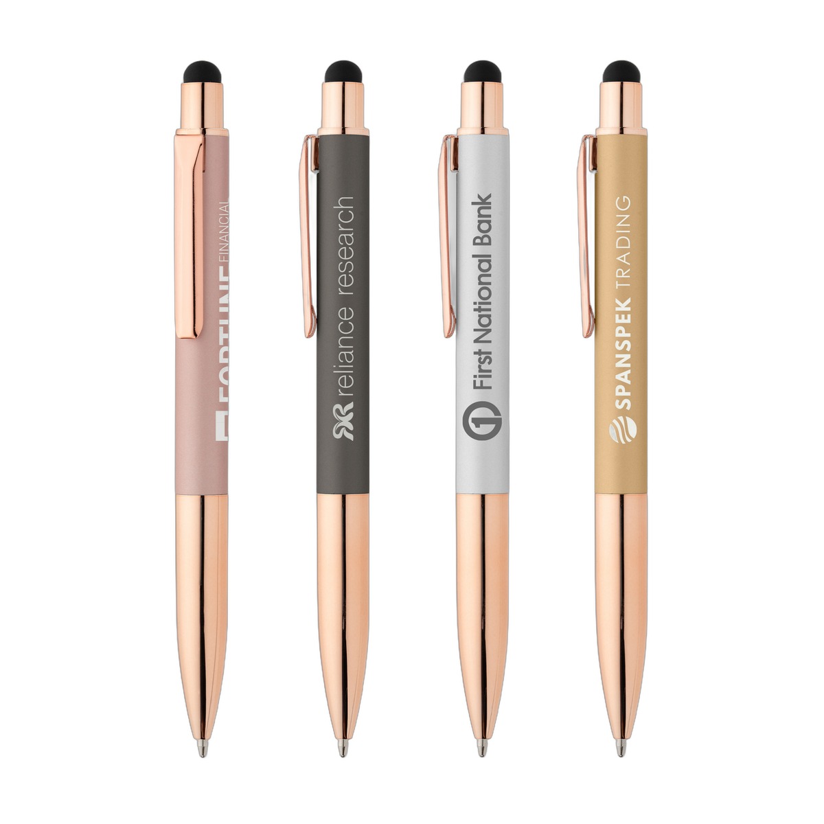The Baltic Softy Rose Gold Pen features luxurious soft-touch finish in rich, metallic colors on the barrel, the perfect complement to the polished rose gold nose cone, trim and clip. A convenient touchscreen stylus is also included. . Complies with Prop 65. 5.59" W x 0.43" D